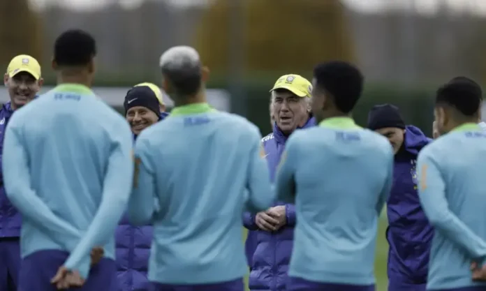 O técnico Carlo Ancelotti começou a definir, nesta quinta-feira (13), a equipe titular da seleção brasileira para o amistoso contra o Senegal, marcado para sábado (15) no Emirates Stadium, em Londres. A formação deve seguir o esquema 4-2-4, adotado pelo treinador em outras oportunidades, com novidades no gol e no setor defensivo.