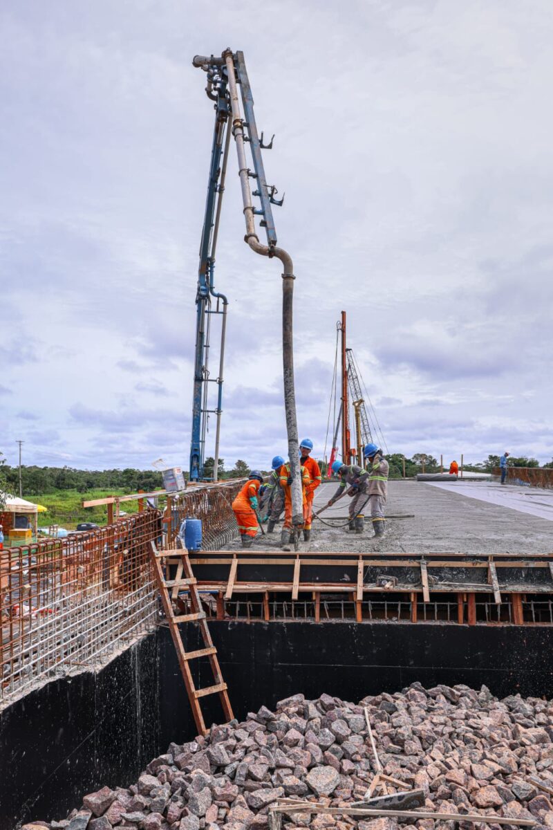 Logo no início da rodovia, a ponte sobre o rio Curuçá já aparece totalmente reconstruída e liberada para o tráfego, com asfalto executado até a cabeceira. No trecho do rio Autaz Mirim, onde a ponte desabou em 2022, as últimas estacas estão sendo concretadas, o lançamento das vigas já começou e a laje entra na fase de preparo, com expectativa de liberação na segunda quinzena de março, segundo o DNIT.