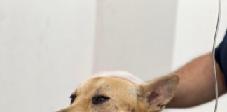 Cadela ferida por artefato explosivo será operada no Hospital Público Veterinário