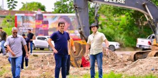 David Almeida e Renato Junior acompanham avanço do asfaltamento na comunidade...