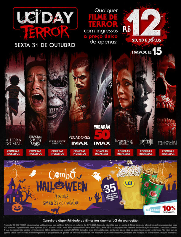 “O UCI Day Terror é um evento que a gente prepara especialmente para a nossa base de fãs de terror, que cresce a cada ano e é super fiel às nossas salas por conta da tecnologia de som e telas gigantes que só a UCI oferece. A ideia é que o público se sinta em uma